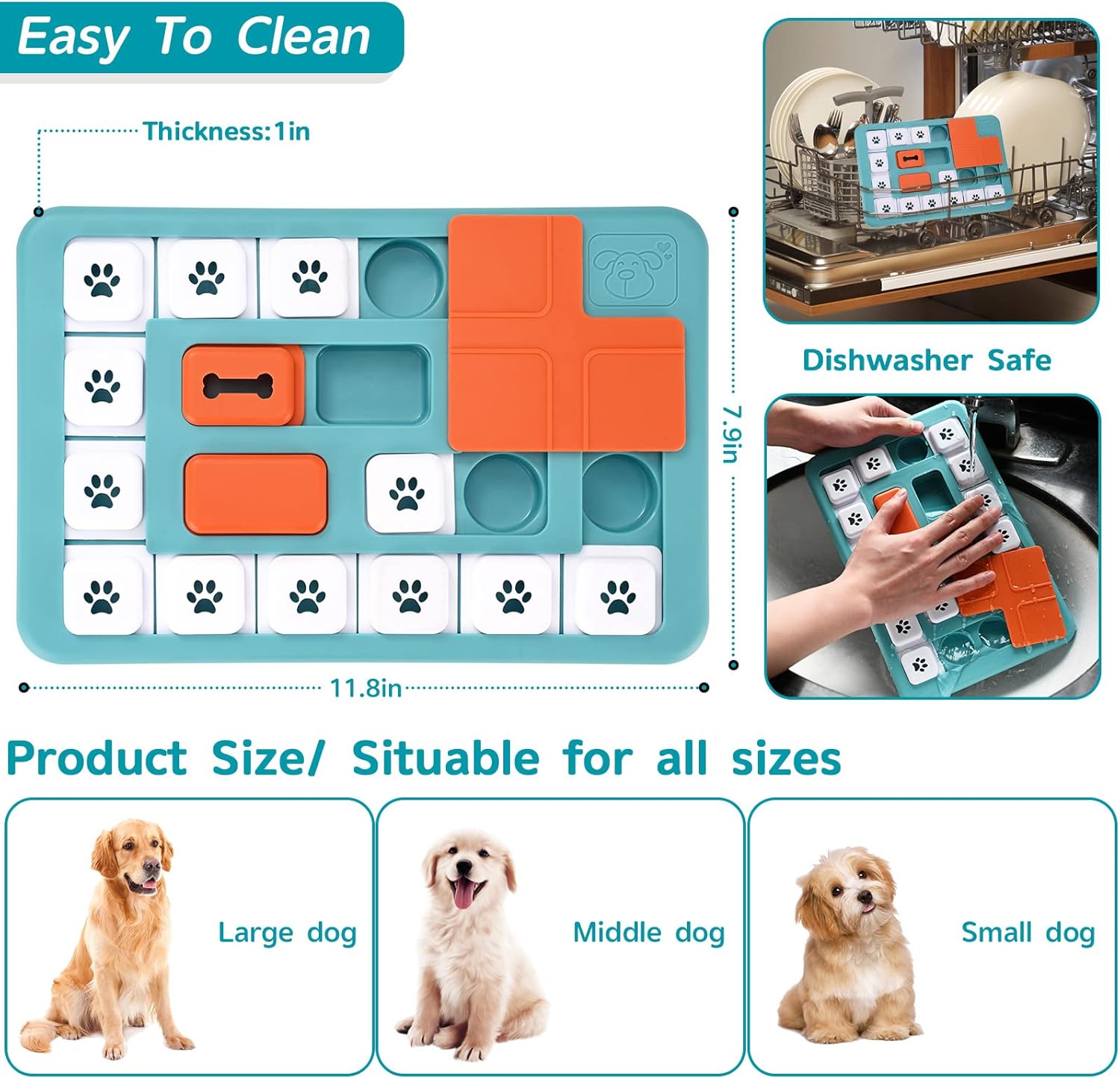 - 【Non-removable Parts Dog Puzzle】For the protection of the dog’s safety,built-in parts of our dog toys are designed to be non-removable, which is to prevent the removable parts from being accidentally eaten by the dog when using the game.